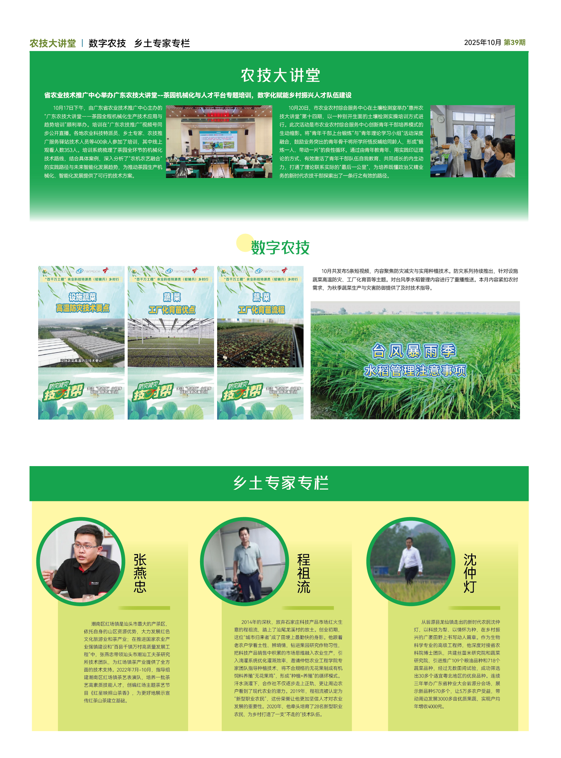10月期间,广东各地农业科技特派员体系展现出强大的服务效能:在灾害应对方面,实现快速响应与高效复产;在技术推广方面,完成多作物、多层级的技术培训覆盖;在产业发展方面,推动特色产业与区域品牌协同发展;在服务模式方面,形成"线上接单+线下服务"的精准对接机制。