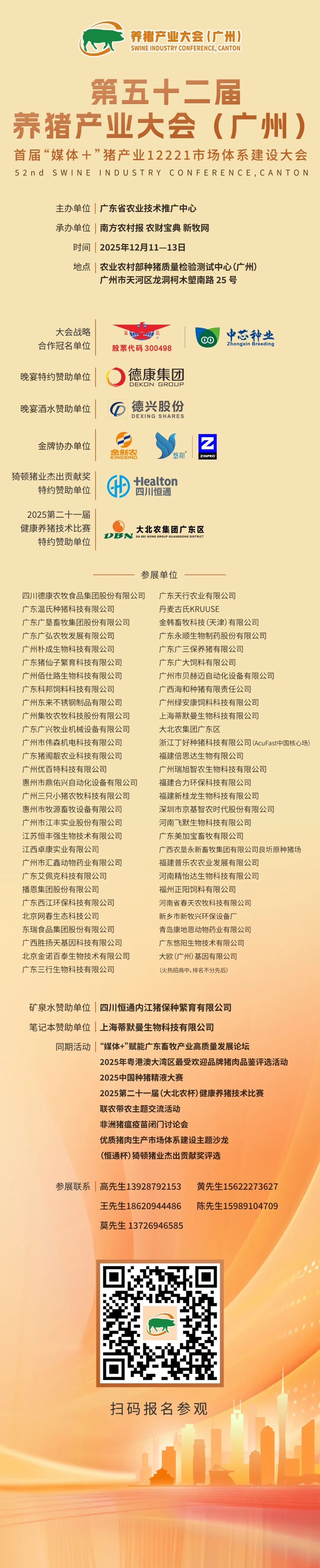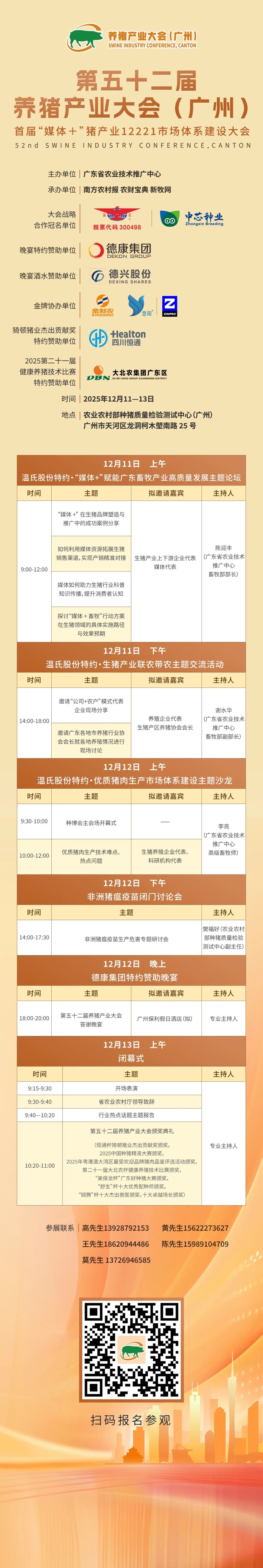 2025年12月11-13日,第五十二届养猪产业大会(广州)暨首届“媒体+”猪产业12221市场体系建设大会将于广州柯木塱农业农村部种猪质量检验测试中心隆重召开。